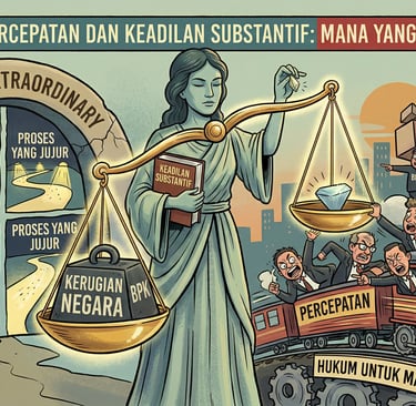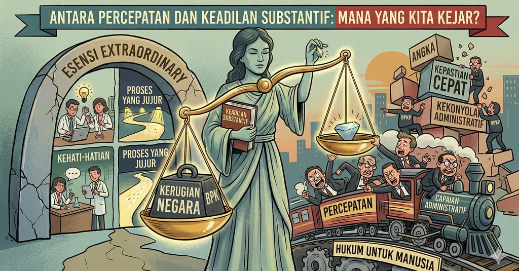 Maka jangan heran jika dalam praktik penegakan hukum kita, kecepatan pelan-pelan naik pangkat menjadi kebajikan. Ia tidak lagi sekadar kebutuhan teknis, tetapi berubah menjadi ukuran keberhasilan. Dalam lanskap seperti ini, pilihan Kejaksaan menggunakan BPKP, alih-alih BPK, tidak lagi terlihat sebagai anomali, melainkan sebagai konsekuensi logis dari sistem yang semakin mengutamakan percepatan.